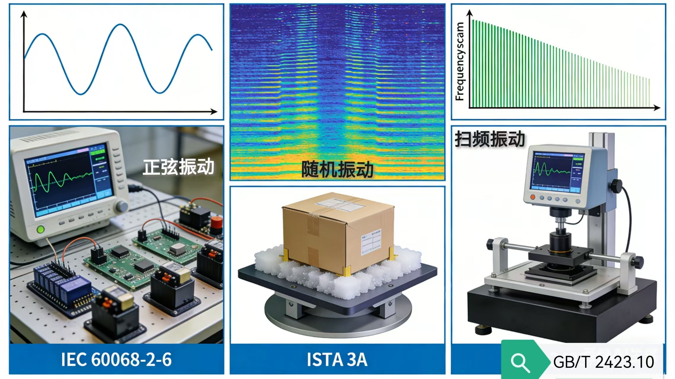 • 电子行业:IEC 60068-2-6(正弦)、IEC 60068-2-34(随机);